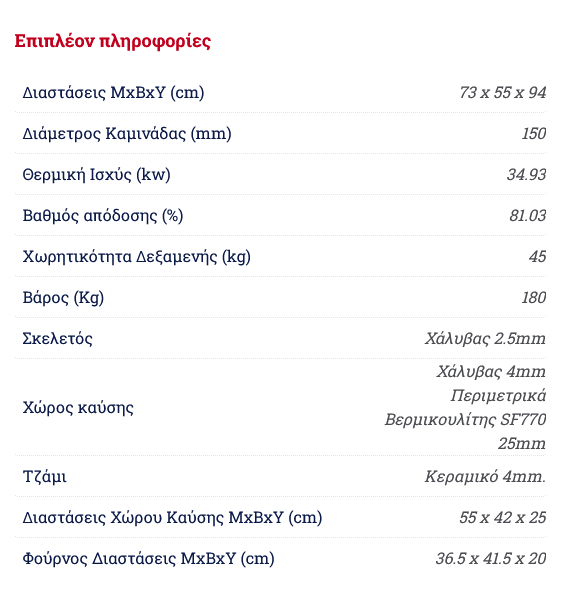 Syrios FENEOS HS-SY-02 HYDRO Σόμπα ξύλου με φούρνο από χάλυβα με λέβητα