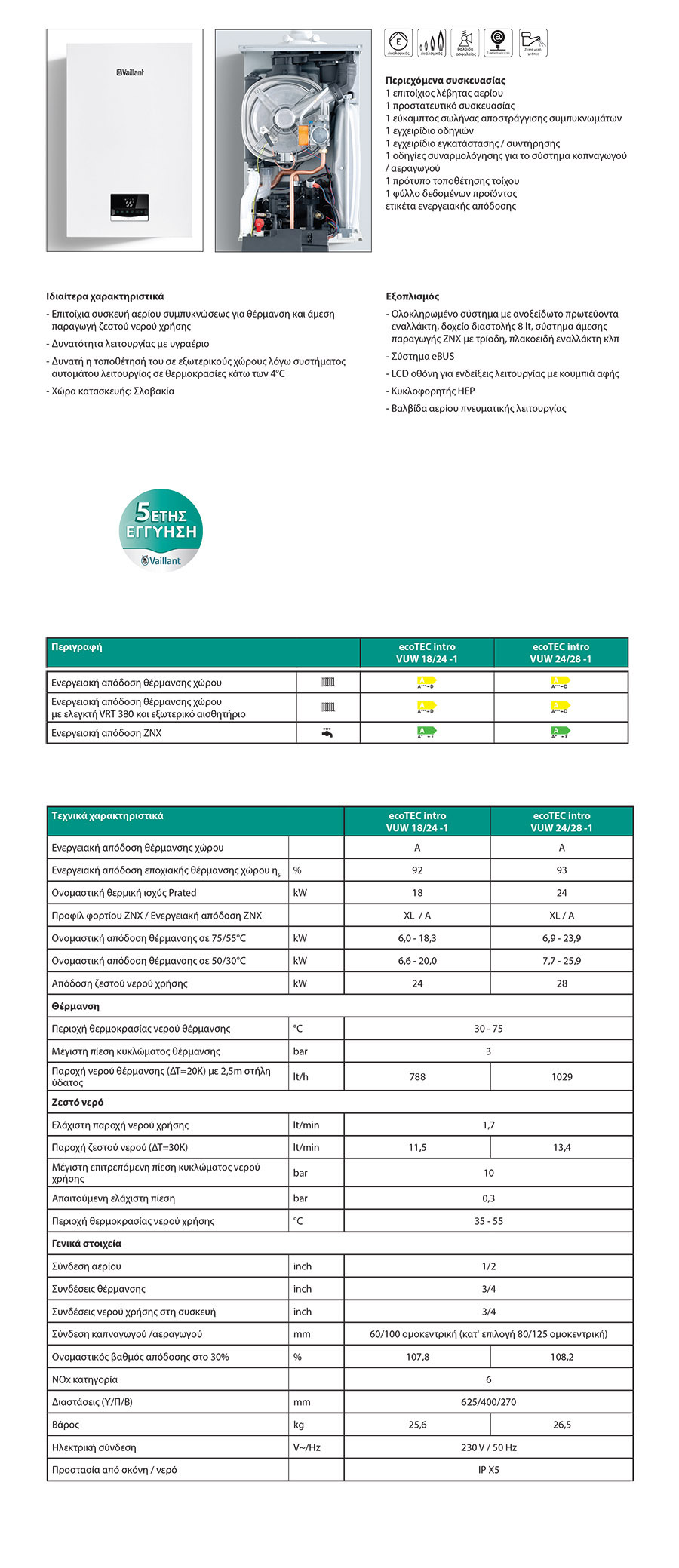 • Vaillant EcoTEC Intro VUW 24/28-1 Επίτοιχος λέβητας αερίου συμπύκνωσης 28kw