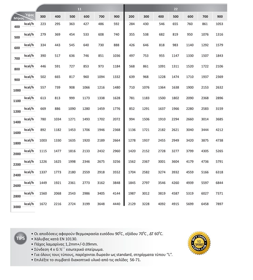 Purmo θερμαντικό σώμα πάνελ 22/600/400 (744kcal/h) Εξωτερικού βρόγχου