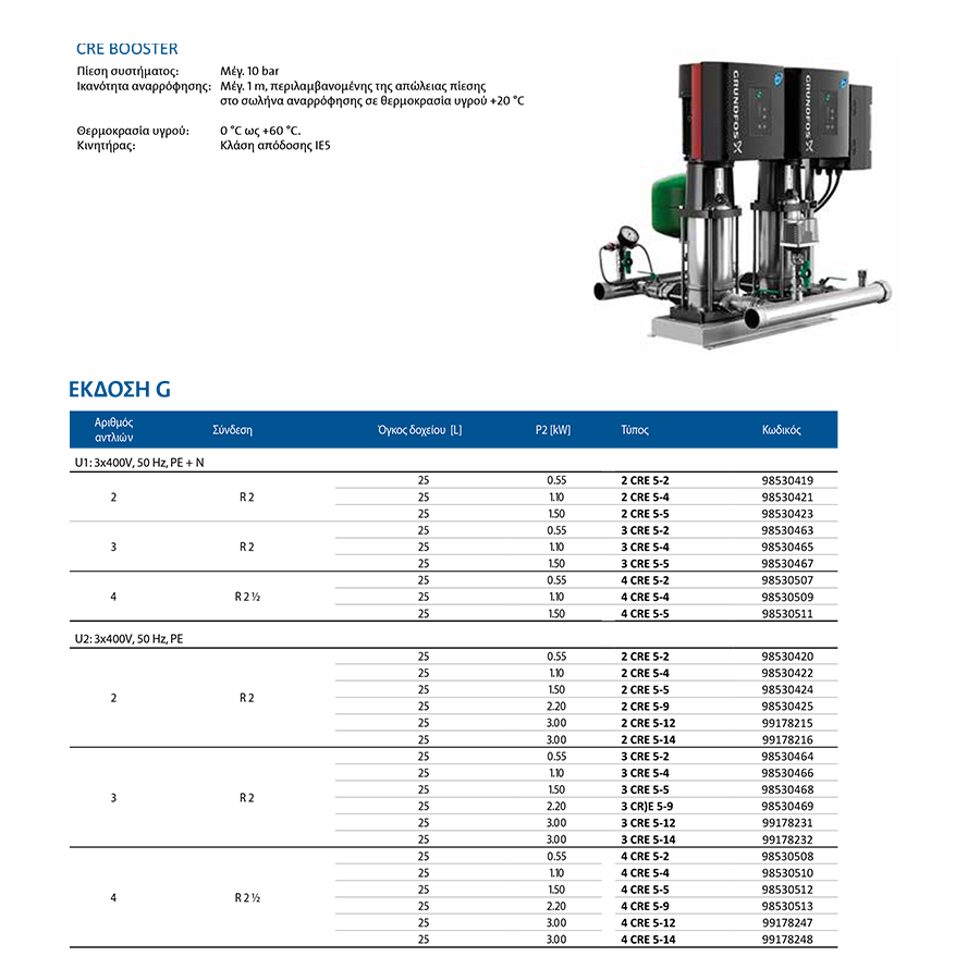 Γρήγορη προβολή Quick View Grundfos 2 CRE 3-15 (PE + N) Πιεστικό Συγκρότημα Με 2 αντλίες Πολυβάθμιες Τριφασικό (1.50 kw) 99178214 12.141,63 € Προσθήκη στο καλάθι