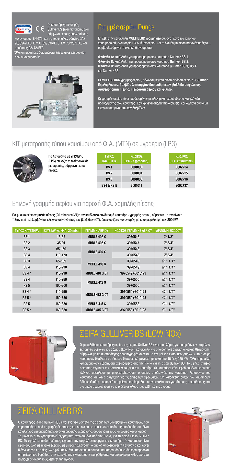 Kαυστήρας Μονοβάθμιος Riello BS 4 + MBDLE 410 G (1 1/4'') Multiblock Αερίου 110-230 Kw