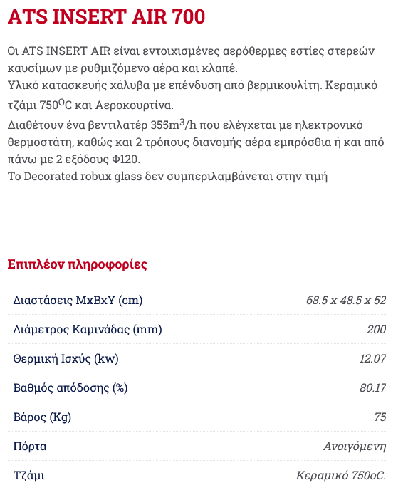 Γρήγορη προβολή Quick View Thermiki ATS INSERT PANORAMA 800 Εντοιχισμένη Αερόθερμη Κασέτα 13.96kw 1.105,00 € Προσθήκη στο καλάθι