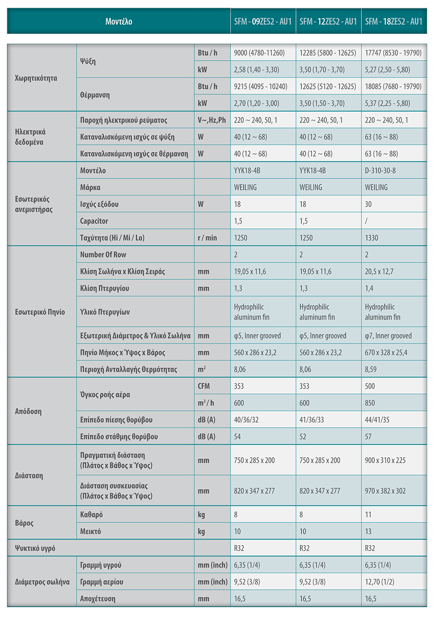 • Sendo ZEAS SFM-09ZES2-OU1 εσωτερική μονάδα για κλιματιστικά Multi 9.000btu