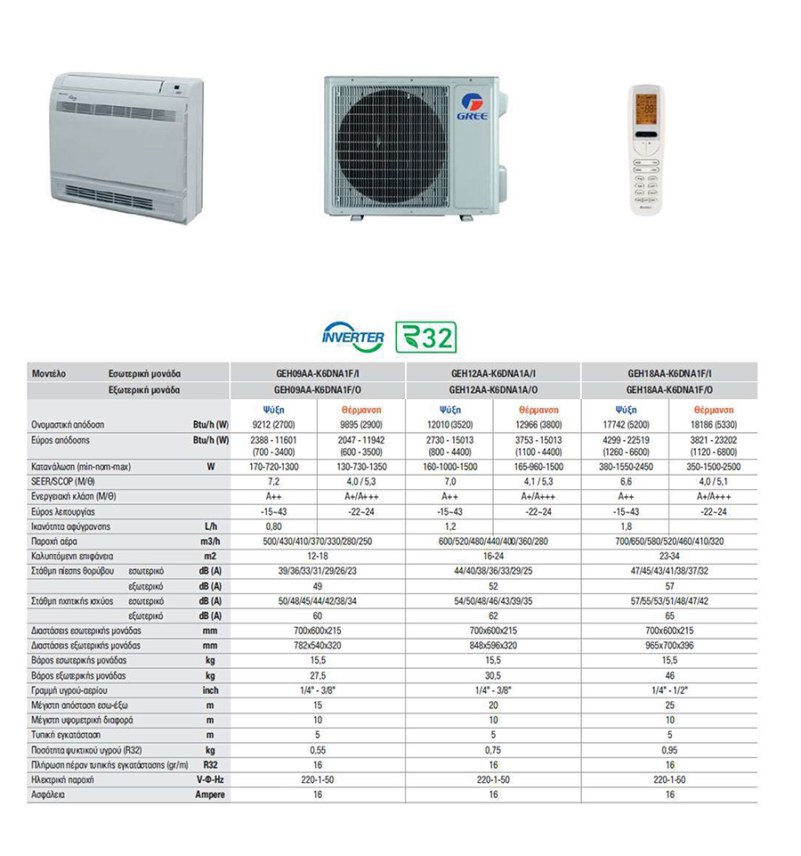 • GREE GEH12AA-K6DNA1A/I / GEH12AA-K6DNA1A/O κονσόλα δαπέδου 12.000 btu/h
