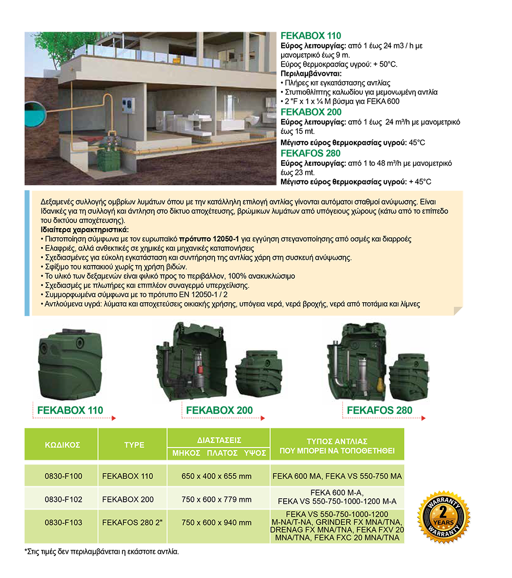 DAB FEKAFOS 280 DOUBLE δεξαμενή συλλογής όμβριων & λυμάτων με φλοτεροδιακόπτη και ασανσέρ