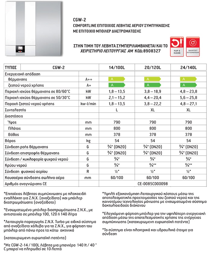 Επίτοιχος λέβητας συμπύκνωσης Ariston Clas One WIFI 30Kw 3302124