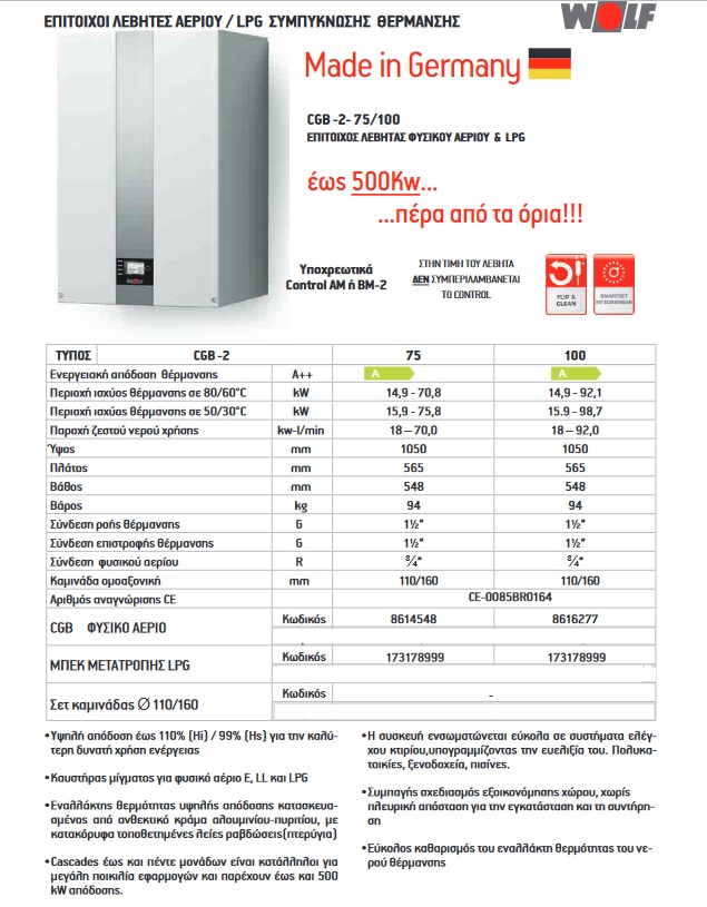 Wolf CGB-2-100 Επίτοιχος λέβητας Αερίου-Υγραερίου Συμπύκνωσης 100Kw