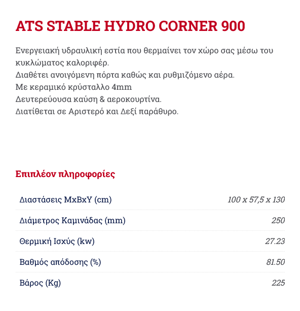 Γρήγορη προβολή Quick View Thermiki ATS CORNER HYDRO 800 Ενεργειακή υδραυλική εστία ξύλου 26kw 2.090,00 € Προσθήκη στο καλάθι