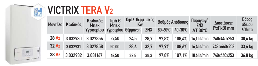 Immergas Victrix Tera V2 38 επίτοιχος λέβητας αερίου συμπυκνωμάτων 38kw