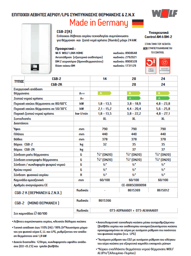 Wolf FGB-K-35 Επίτοιχος Λέβητας Αερίου-Υγραερίου Συμπύκνωσης 35Kw με Καμινάδα