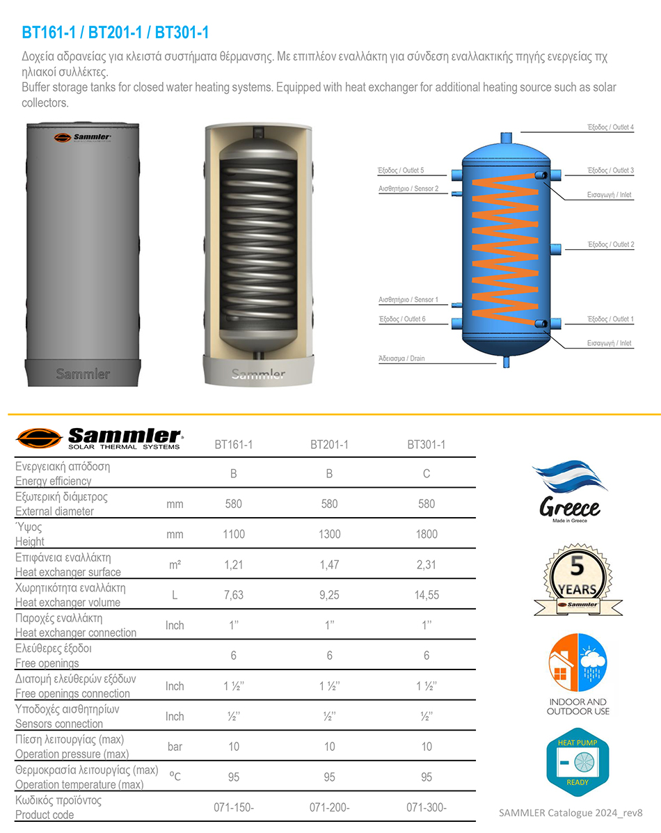 Sammler BT301- 1 Δοχείο Αδρανείας για κλειστο σύστημα θέρμανσης με 1 εναλλάκτη