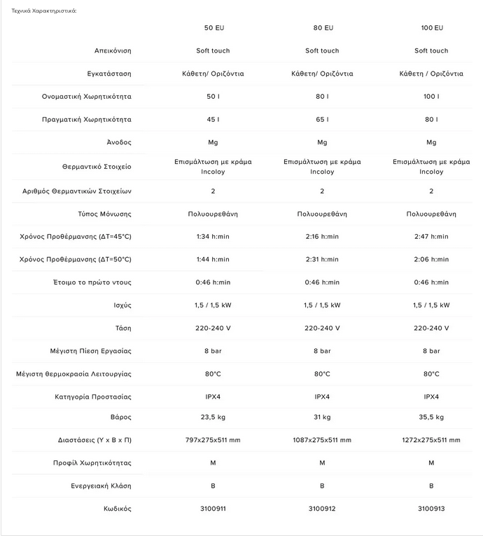 • Προστασία δεξαμενής: Διπλή άνοδος μαγνησίου. Η πρωτοποριακή του προστασία από τα άλατα εξασφαλίζει συνεχή ηρεμία.