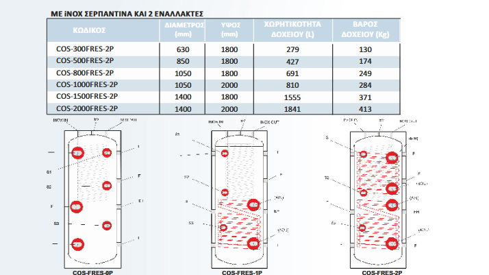 Cosmosolar δοχείο αδρανείας με inox σερπαντίνα με δύο εναλλάκτες COS-1500FRES-2P (1555 lt)