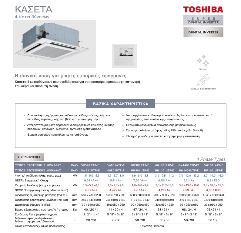 Toshiba RAV-GM301ATP-E/HM301MUTP-E κασέτα digital inverter μονοφασικό 9.000 btu