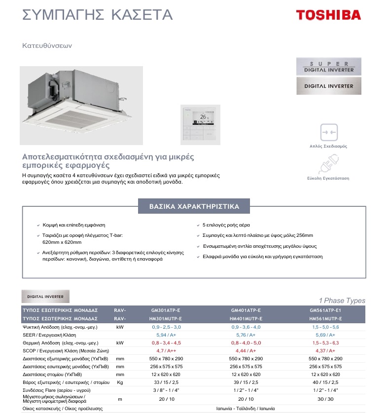 Toshiba RAV-GM561ATP-E/HM561MUTP-E κασέτα digital inverter μονοφασικό 17.000 btu
