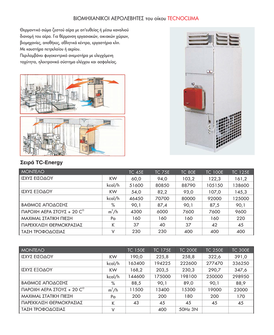 Tecnoclima TC 80E Βιομηχανικός Αερολέβητας Πετρελαίου Τριφασικό (Χωρίς Καυστήρα) 103.2 kw