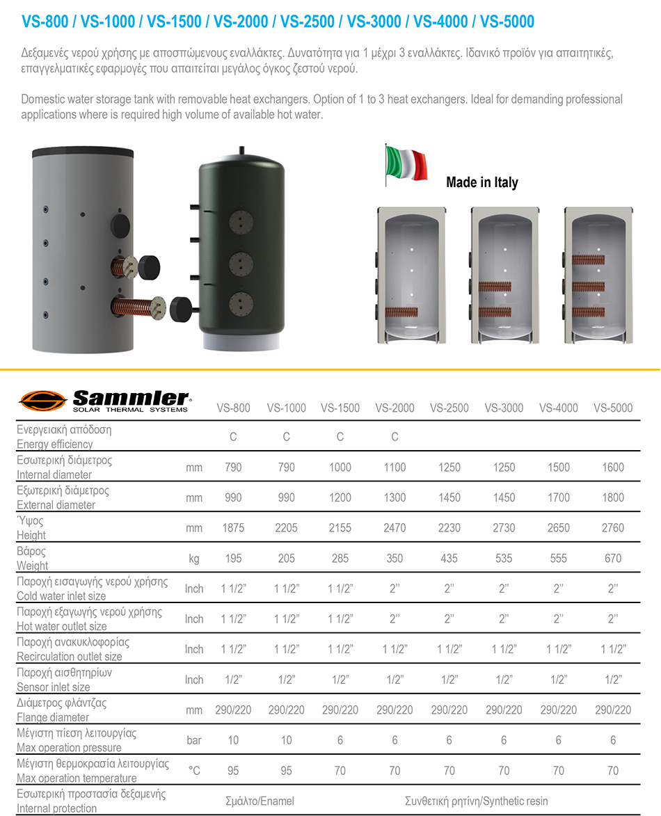 Γρήγορη προβολή Quick View Sammler VS1 3000 Boiler Λεβητοστασίου με Έναν Αφαιρούμενο Εναλλάκτη 2959 L 5.279,00 € Προσθήκη στο καλάθι