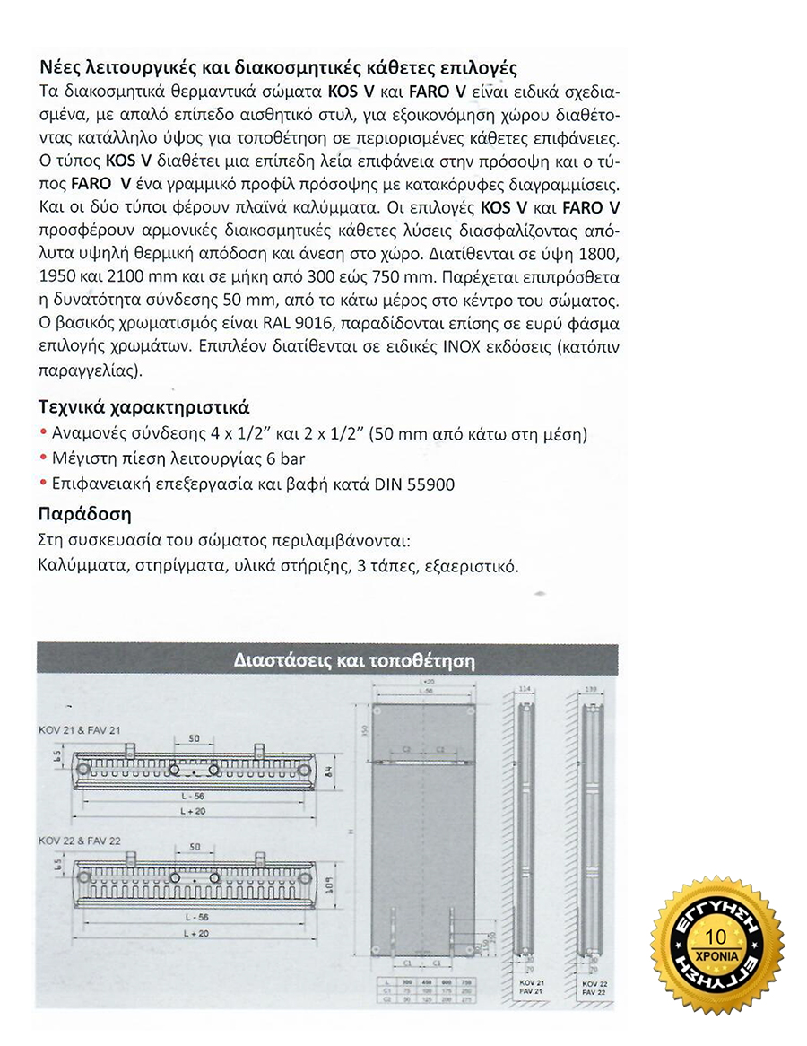 Purmo KOS V θερμαντικό πάνελ KOV 21/2100/300 (1064kcal/h) Εσωτερικού βρόγχου