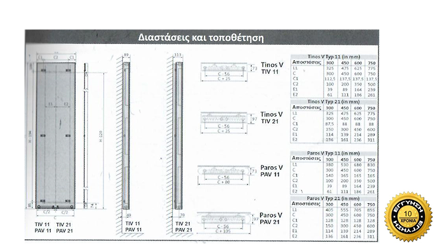 • Purmo PAROS V θερμαντικό πάνελ PAV 11/1950/680 (1526kcal/h) Εσωτερικού βρόγχου