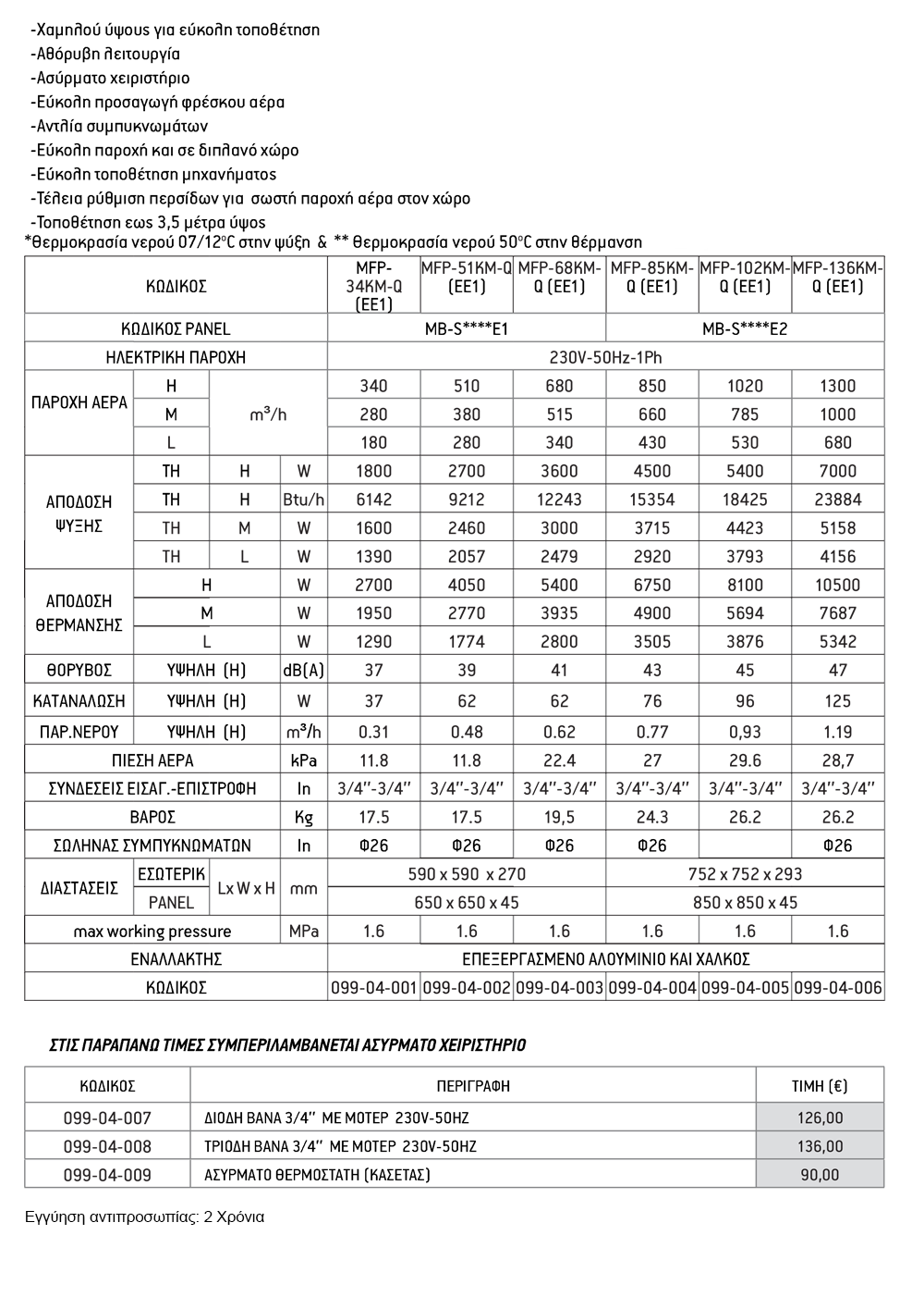 FAN COIL ΨΕΥΔΟΡΟΦΗΣ ATTEL PHCD3-100-ΨΥΞΗ 8.03 ΚW ΘΕΡΜΑΝΣΗ 10.49 KW