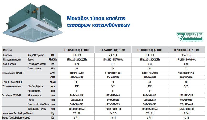FAN COIL ΚΑΣΣΕΤΑ ATTEL P4CM2-30 ΨΥΞΗ 2.44 ΚW ΘΕΡΜΑΝΣΗ 3.42 KW