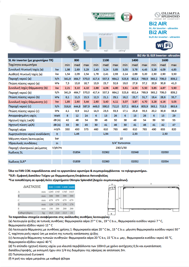 *Στην τιμή του προϊόντος δεν περιλαμβάνεται το απομακρυσμένο χειριστήριο τοίχου και οι βάσεις δαπέδου (ποδαράκια)