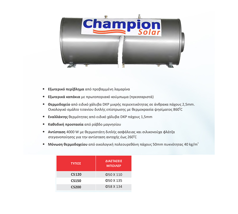 Thermic δοχείο ηλιακού (οριζόντιο) διπλής ενέργειας BLT ECO GL 200 (190 lt)