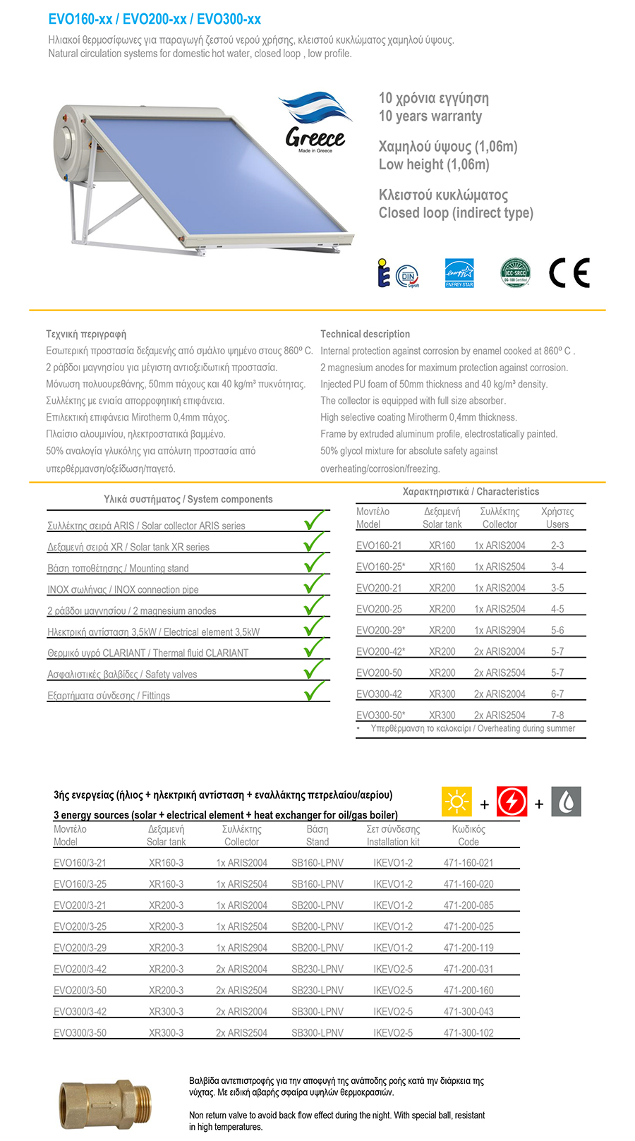 Sammler EVO 300 lt Ηλιακός θερμοσίφωνας Χαμηλού Ύψους 5,04 m² Τριπλής Ενέργειας