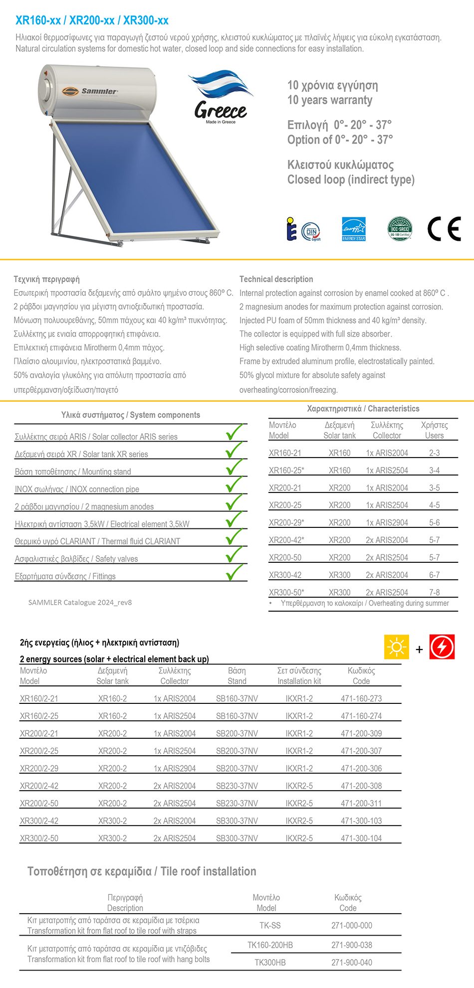 Enersan Champion CS 120-1.5 E Ηλιακός Θερμοσίφωνας Διπλής Ενέργειας 1.5 m²