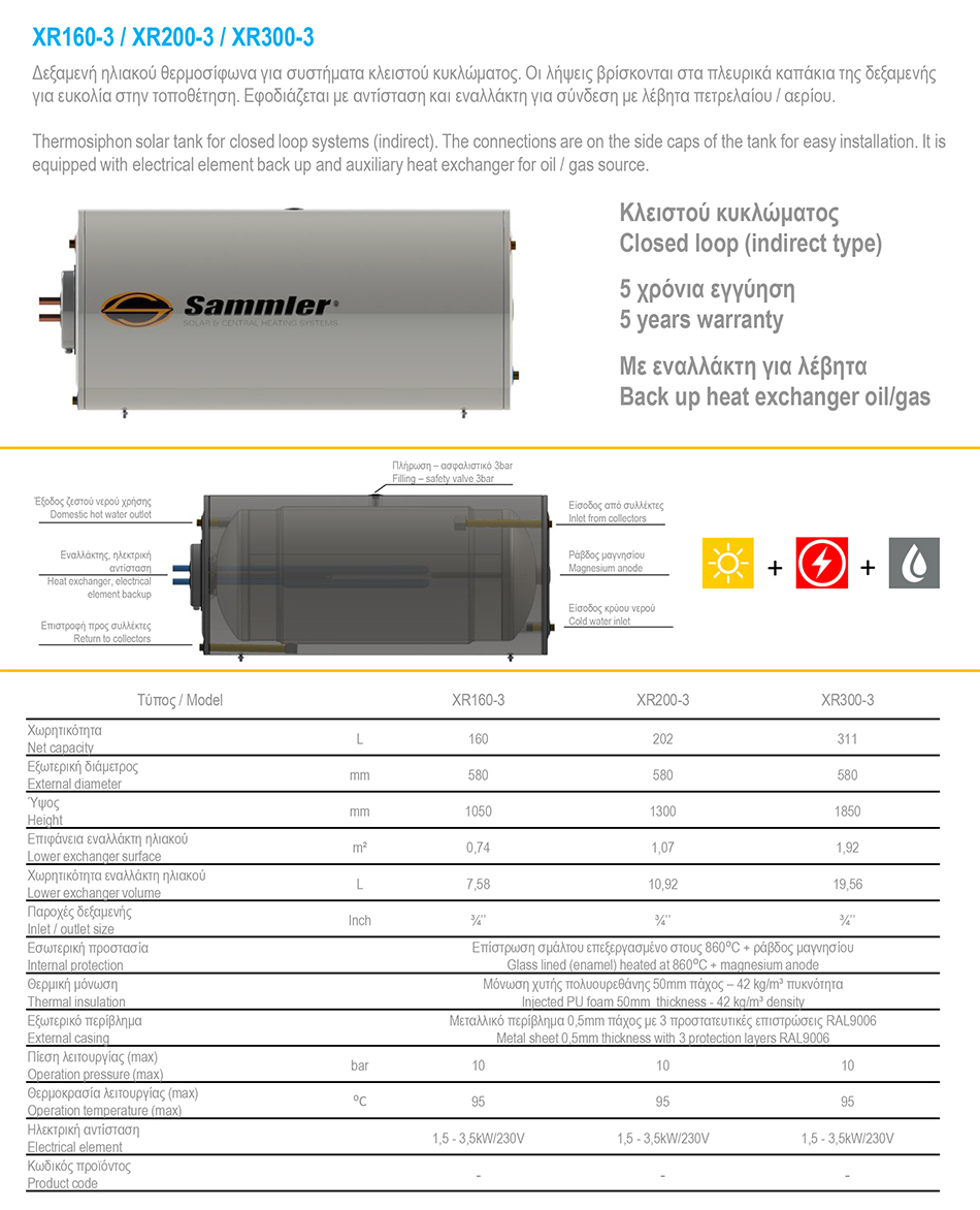 Thermic δοχείο ηλιακού (οριζόντιο) τριπλής ενέργειας BLT ECO GL 120 (112 lt)