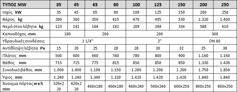 -Κατασκευάζεται σε διάφορα μοντέλα ισχύος 35 kW έως 250 kW.