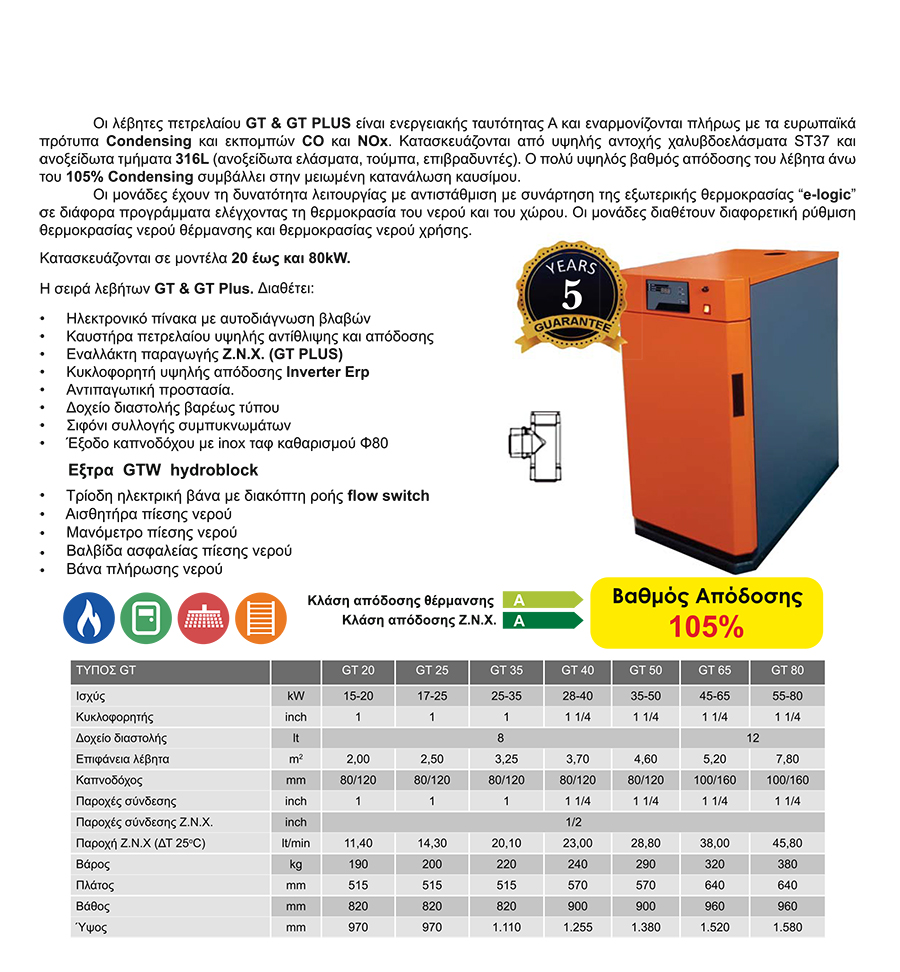 GREENTECH GTC 45 Επιδαπέδιος Χαλύβδινος λέβητας συμπύκνωσης Πετρελαίου 45 kw