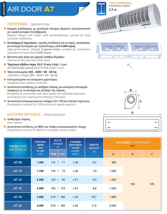 Γρήγορη προβολή Quick View Olefini αεροκουρτίνα απλή υψηλής παροχής K – 28 , πλάτος πόρτας 2.0Μ 1.344,00 € Προσθήκη στο καλάθι