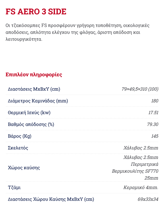 Thermiki FS AERO 3 SIDE Χαλύβδινη Τζακόσομπα 17.51Kw